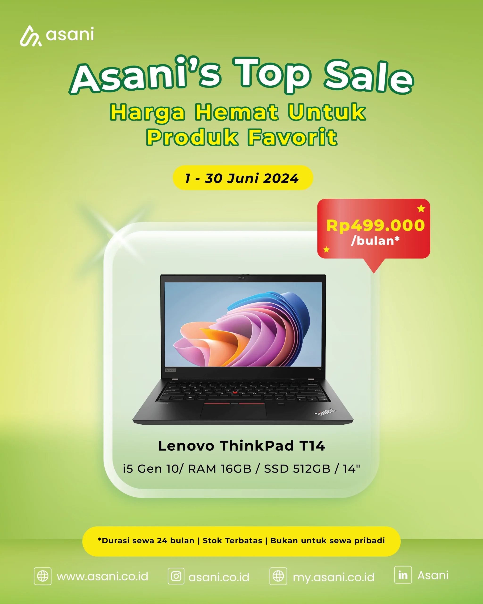 Sewa laptop Lenovo, Dell atau MacBook di Asani harga mulai dari Rp299.000/bulan*. Yuk cek dulu laptop apa aja yang promo!