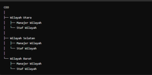 Deskripsi: Struktur ini membagi organisasi berdasarkan wilayah geografis untuk menangani pasar lokal atau regional.