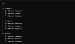 - Manajer Produk: Setiap divisi dipimpin oleh manajer produk.