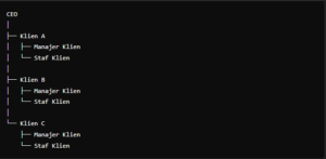 - Koordinasi Lintas Divisi: Divisi klien bekerja sama untuk memenuhi kebutuhan klien.