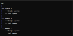 Deskripsi: Struktur ini membagi perusahaan berdasarkan jenis layanan yang diberikan.