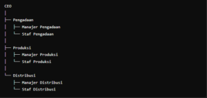 Deskripsi: Struktur ini adalah model klasik di mana perusahaan diorganisasikan dalam bentuk piramida. Terdapat jalur komando yang jelas dari atas ke bawah.