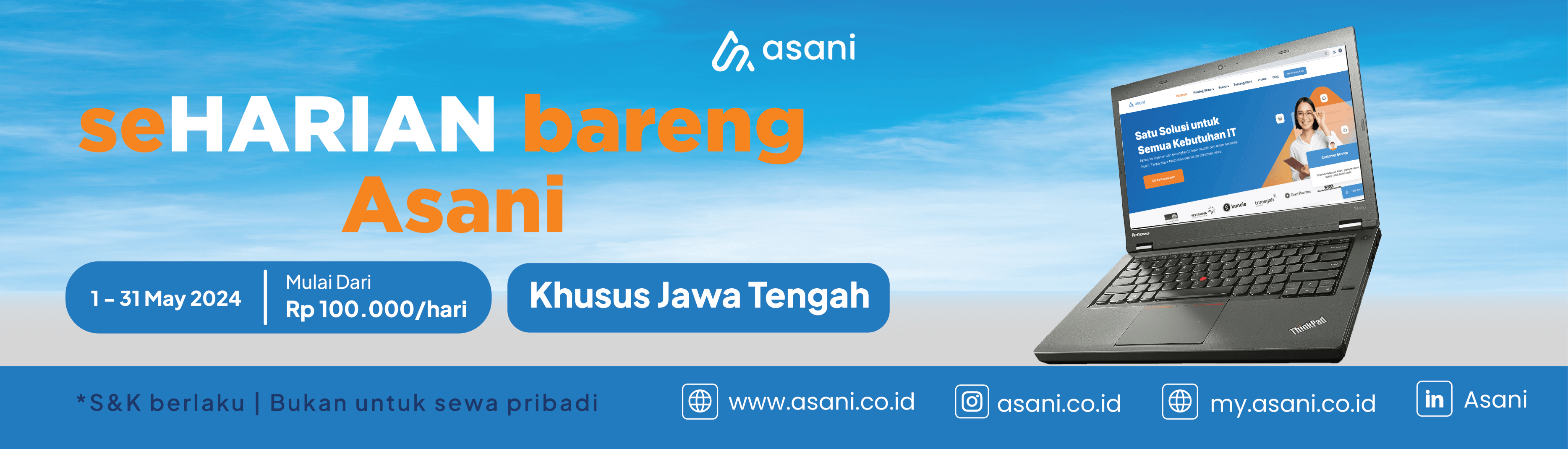 Asani menyediakan sewa laptop harian untuk kebutuhan event atau keperluan bisnis dalam jangka waktu singkat. Harga sewa mulai dari Rp100.000/hari ajaaaa.